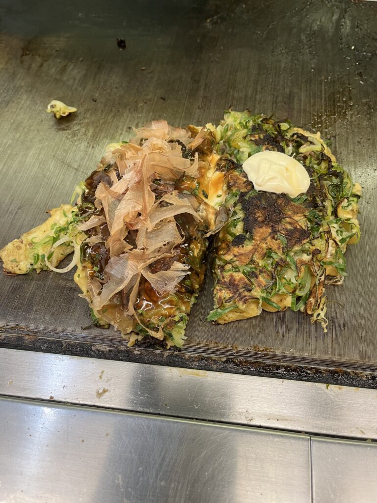 今日は、テレビで見て、美味しそうだなと思って、大阪、天王寺にある「あべとん」という、お好み焼き屋さんのお店で、人気メニュー、すじこんねぎ焼きを食べてきました。